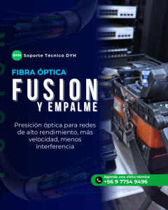 Empalme por fusión con estándares industriales, bandejas y cierre hermético.